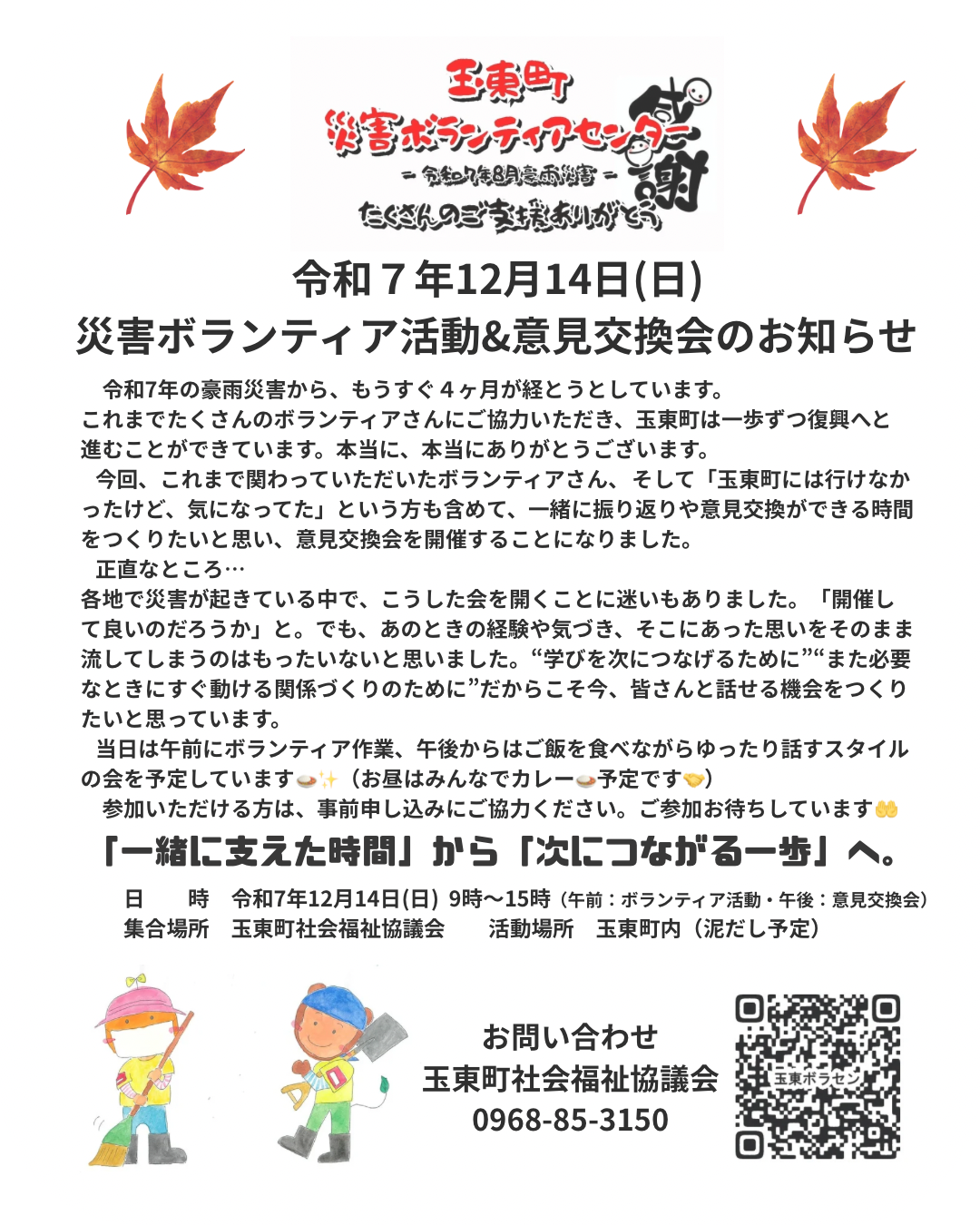 令和7年12月14日(日)災害ボランティア活動&意見交換会のお知らせ